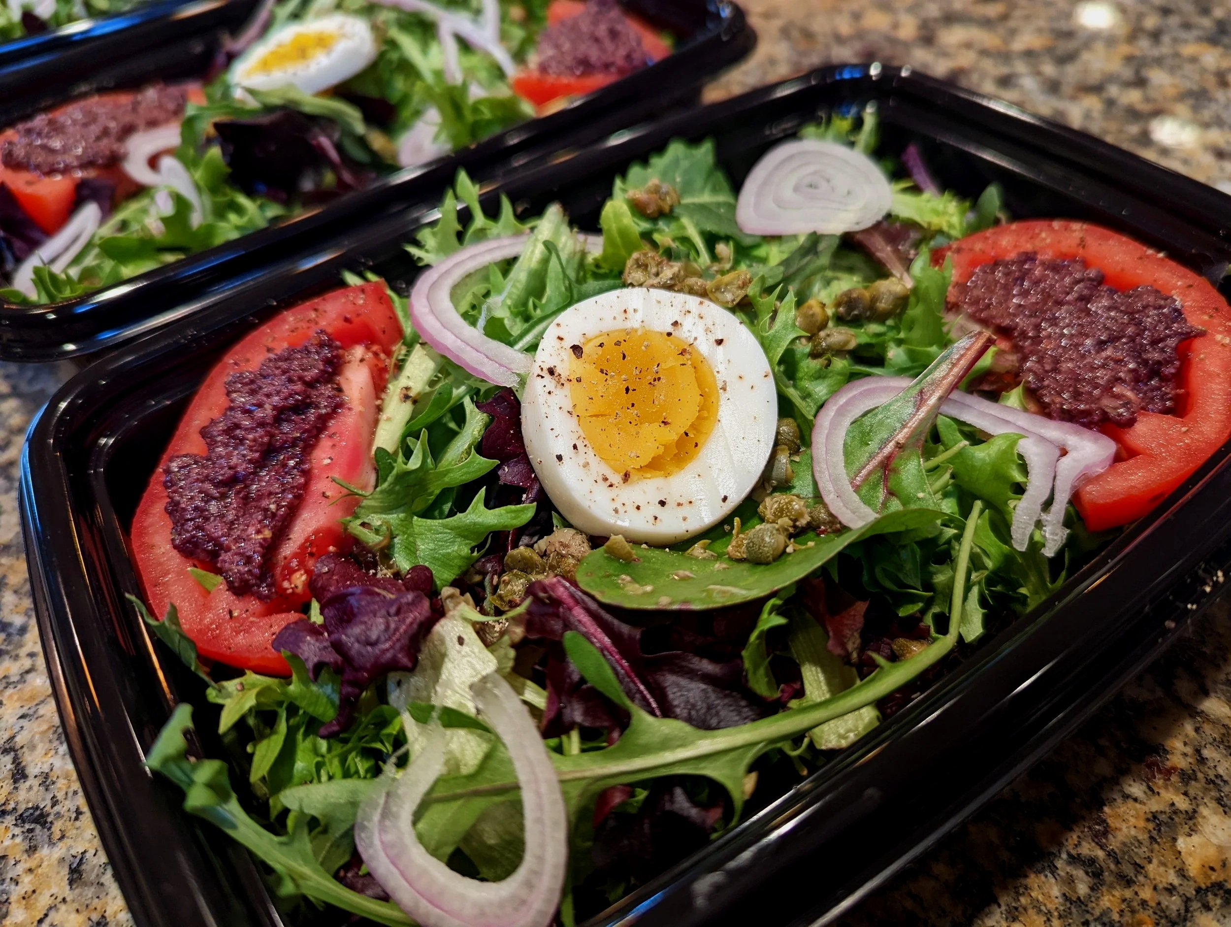 salad options: caesar salad | romaine house salad | caprese salad | simple greens salad with goat cheese or gorgonzola | bistro salad with 7-minute egg & kalamata olive tapenade | spinach & green apple salad | arugula, fennel, citrus & parmesan salad