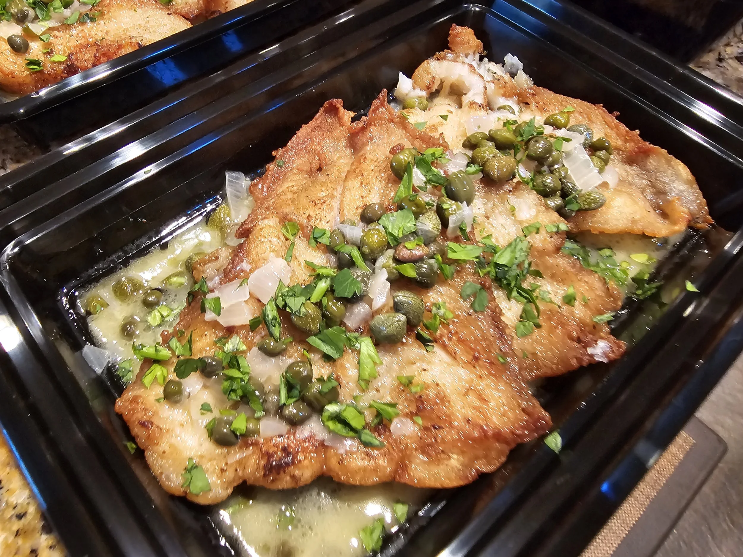 thin dover sole filets dusted in flour, pan-fried & served in a lemon beurre blanc with capers. comes with pomme puree, roasted carrots & fennel & choice of salad